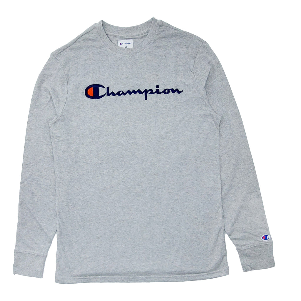 • CHAMPION EMBROIDERED LOGO LONG SLEEVE T-SHIRT (GREY)